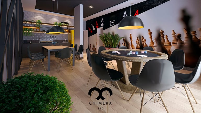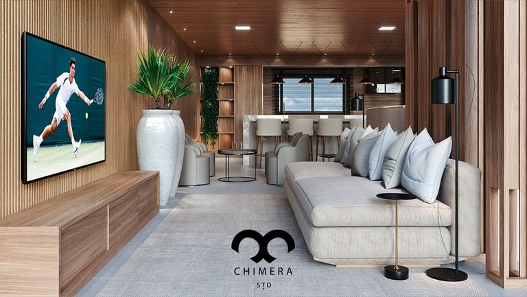 Ambiente moderno e imersivo para entretenimento.